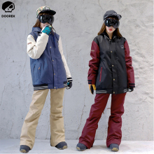 潮牌蘑菇头韩国单双板情侣加长防水夹棉滑雪服棒球款套装