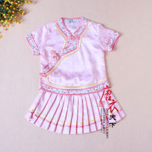 新款复古女童短袖套装儿童中式民族风套装女宝宝夏款丝绸唐装套装