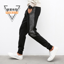 2016春新款松紧收脚裤修身男裤加肥加大码弹哈伦裤小脚休闲裤潮男