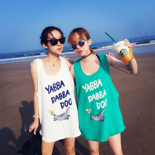 2017夏季新款韩范卡通印花宽松显瘦无袖T恤中长款背心裙闺蜜装女