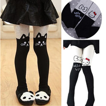 儿童秋冬连裤袜童装女宝宝纯棉打底袜可爱猫咪假高筒针织裤袜包邮