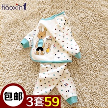 婴幼儿童套装保暖内衣加绒加厚男宝宝冬季秋衣秋裤全棉好鑫中小童