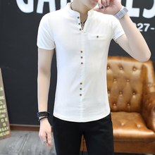夏季男士短袖t恤立领新款纯棉体恤韩版半袖衣服中国风男装潮流