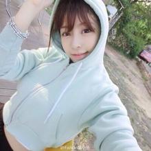 秋季新品欧美百搭带帽开衫 高腰露肚脐短款卫衣 糖果休闲外套