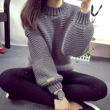 韩国女士高领加厚毛衣套头学生秋冬装韩版宽松粗针纯色打底针织衫