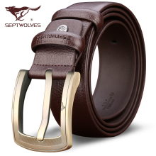 七匹狼头层牛皮腰带 双面牛皮 针扣 带孔型 真皮腰带 专柜正品