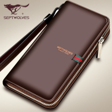 七匹狼钱包男真皮长款拉链钱包牛皮钱夹商务手拿包男士手包手抓包