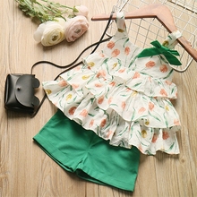笑然家韩版女童清凉套装儿童纯棉蛋糕吊带衫+短裤两件套2017夏款