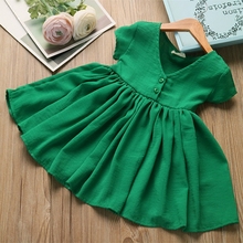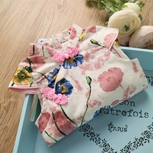 可亲子女童立领盘扣旗袍儿童宝宝水墨画棉麻短袖连衣裙2017夏季款