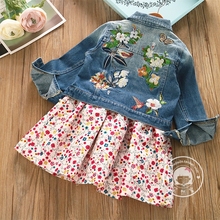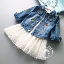 笑然家欧美女童牛仔服儿童绣花软牛仔外套牛仔衣开衫2017春装新款