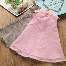 笑然家女童唯美盘扣旗袍儿童植绒纱背心裙连衣裙A字裙2017夏新款