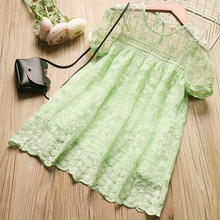 笑然家女童精致绣花连衣裙儿童柔软蕾丝中袖公主裙长裙2017夏季款