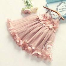 笑然家女童立体花瓣连衣裙儿童柔软网纱背心裙公主裙2017春夏新款