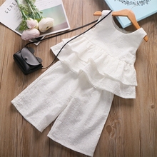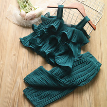 笑然家韩版女童雪纺套装儿童木耳边吊带衫+哈伦中裤两件套2017夏