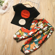 特价韩版女童套装儿童圆领贴布短袖T恤+薄棉哈伦裤两件套2017夏款