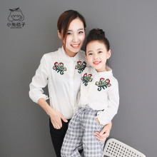 纯棉衬衫亲子装春装上衣母女装绣花长袖韩版2017春秋季新款女童装