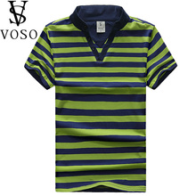 Voso/沃索男士装夏季棉V领彩条纹大码运动薄短袖t恤POLO保罗衫