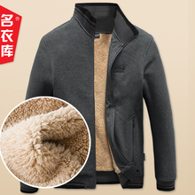 卫衣男加绒休闲加厚连帽开衫中老年运动套装男冬季羊羔绒保暖上衣