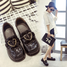 2016秋季新品韩版漆皮圆头小皮鞋金属爱心扣平跟百搭休闲鞋大头鞋
