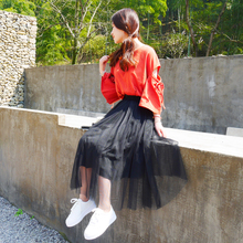 春夏网纱裙半身裙女2017新款中长款高腰长裙a字裙篷篷裙蕾丝裙子