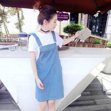 2017夏季韩版半身长裙修身显瘦半身裙女中长款百搭牛仔无袖背带裙