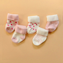 刚出生婴儿袜子秋冬新生儿纯棉宝宝袜不勒脚松口加厚翻口毛圈棉袜
