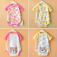婴儿连体衣爬服夏季女童宝宝短袖哈衣服装3-6-9月新生儿用品纯棉