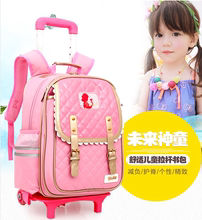 韩版儿童拉杆书包小学生1-3-6年级女生三轮楼梯轮6-12周岁背包
