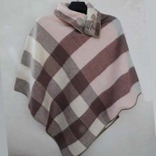 欧美风羊毛羊绒羔羊绒格子一粒扣精工披肩百搭蝙蝠袖斗篷