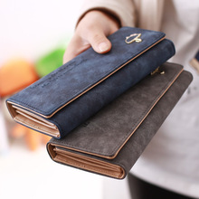 磨砂钱包女式长款三折韩版卡通女生2016新款时尚复古零钱位淑女潮