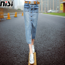 2017春夏新款韩版修身显瘦牛仔裙女中长款高腰半身裙包臀长裙子潮