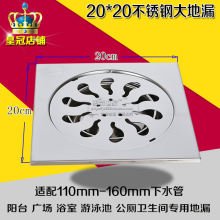 不锈钢6寸大地漏20cm*20cm方形防臭大地漏适配110mm-160mm下水管