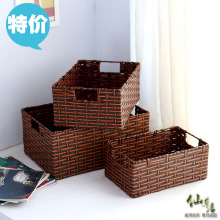 藤编桌面收纳筐储物筐收纳盒储物盒大码收纳箱无盖零食玩具整理筐