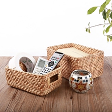 KENS 进口藤编织收纳篮 遥控器收纳盒 可重叠桌面收纳筐