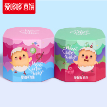 发货很快,收到货后发给同事,都说这款包装很漂亮。生了猴宝,多多桃很有特点。同事生宝宝也买的爱哆哆,喜饼味道也很好。?