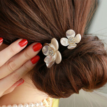 包邮韩国发饰流行饰品女气质橡皮筋头花珍珠发圈镶钻双花朵扎头绳