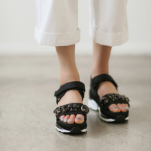 韩国正品代购女鞋2017夏新韩版休闲学院宝石镶钻露趾厚底运动凉鞋