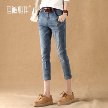 自然相伴春季九分牛仔裤女薄款九分裤宽松磨白哈伦裤女裤小脚裤