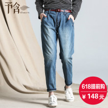 予含哈伦裤牛仔裤女2017新高腰显瘦BF风长裤子中性垮裤潮大码胖MM