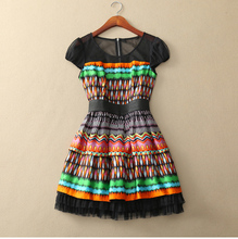 专柜正品 春夏新款女装 samil莎米雅 复古气质印花连衣裙A8463