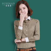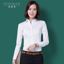 秋季长袖白衬衫女装大码韩版通勤商务修身显瘦职业正装丝光棉衬衣
