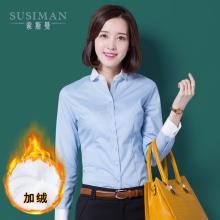 秋冬保暖打底衬衣女修身商务加厚加绒白衬衫女长袖大码OL职业正装