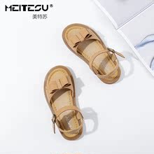 2017夏季平底凉鞋女学院风女鞋蝴蝶结学生一字扣带露趾平跟平底鞋
