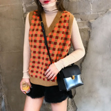 复古韩系风!!菱形格子毛衣马甲背心+纯色高领打底 可分开买