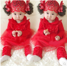 婴儿公主满月长袖礼服裙子套装纯棉春季女宝宝衣服春秋夏装1周岁