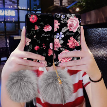 oppo R9s女款狐狸毛球手机壳 R9Splus手机壳浮雕花朵硅胶保护外套