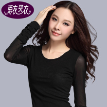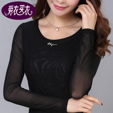 2017春装内搭网纱打底衫女长袖时尚新款 圆领修身纱衣秋冬t恤9903