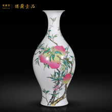 景德镇陶瓷器 仿清乾隆粉彩九桃纹三连瓶 客厅装饰收藏工艺品摆件