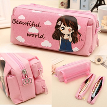 可爱创意简约卡通笔袋大容量女初中小学生铅笔盒多层文具盒