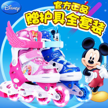 迪士尼儿童溜冰鞋全套装轮滑鞋男初学女旱冰滑冰鞋儿童直排轮闪光